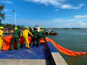 Ngay lập tức, lực lượng cứu hộ triển khai tàu, ca nô vào vị trí cảnh giới an toàn, thông báo tàu thuyền không di chuyển vào khu vực; triển khai tàu giả định sự cố vào vị trí chỉ định; đồng thời triển khai các tàu kéo phao, ca nô, xuồng hơi hỗ trợ vào vị trí nhanh chóng thực hiện cô lập nguồn dầu tràn.