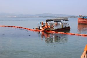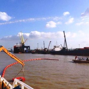 Một số hình ảnh tại công trường lắp đặt Phao quây dầu tràn.